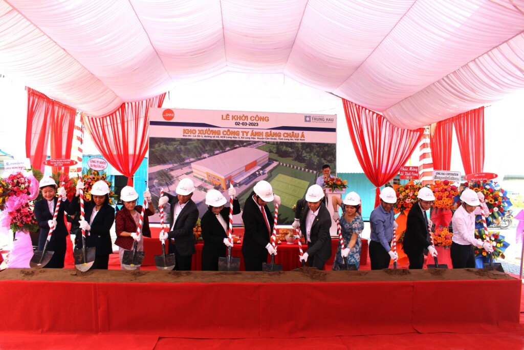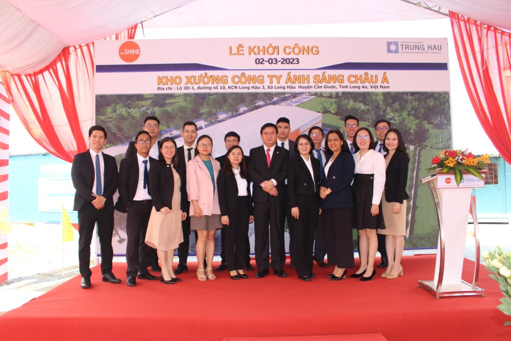 On the morning of March 2, 2023, Trung Hau organized the ground-breaking ceremony for the Asia Shine Company Warehouse Project at Long Hau 3 Industrial Park, Can Giuoc District, Long An Province. The event was attended by distinguished guests including members of the Former Students Association of Ho Chi Minh City University of Technology (BKA), the management board of Long Hau Industrial Park, the investor Asia Shine Trading and Services Company Limited, and the main contractor Trung Hau Construction Company.