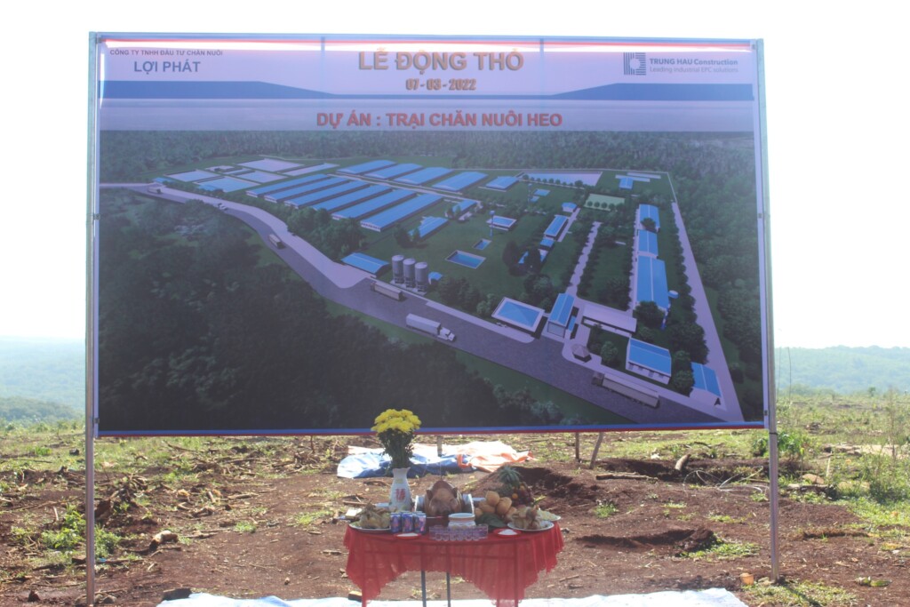 On March 7, 2022, Trung Hau Construction Joint Stock Company held a groundbreaking ceremony for a high-tech livestock farm. The farm is being constructed on an 11-hectare site in Dac O commune, Bu Gia Map district, Binh Phuoc province. The farm is being built according to modern technological standards transferred from leading agricultural livestock corporations, ensuring high-quality breeding practices.