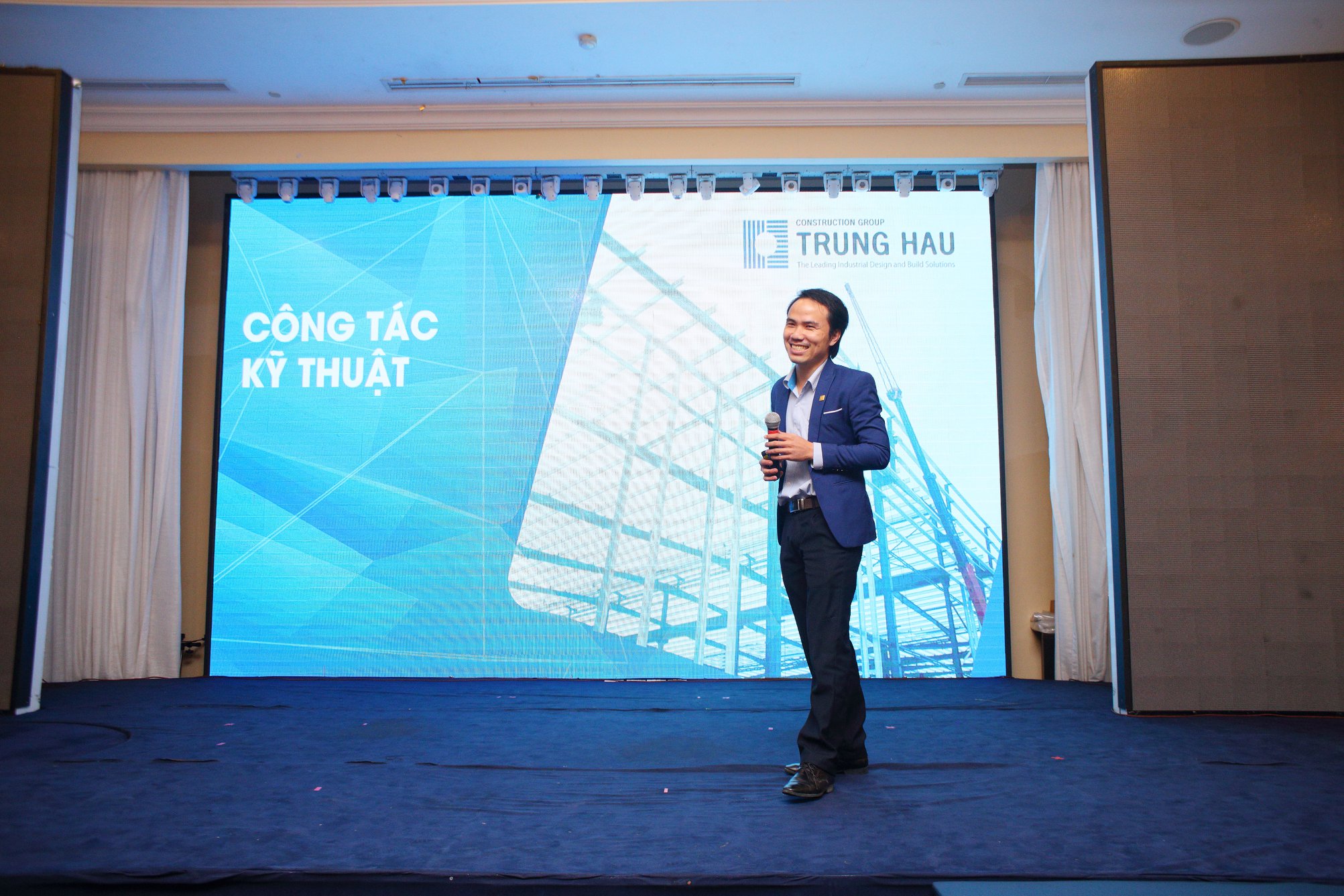 Tổng Giám Đốc Võ Đại Khôi đã mở đầu chương trình với việc nhìn lại một năm đầy thách thức của Trung Hậu khi trong bối cảnh kinh tế thế giới biến động bất ổn ảnh hưởng đến xu hướng đầu tư của các doanh nghiệp FDI và ngành xây dựng trong nước chứng kiến nhiều rất nhiều thách thức, mặc dù vậy với sự nỗ lực của toàn thể CBNV thì công ty vẫn đạt được các kết quả khích lệ trong kết quả kinh doanh và xây dựng hệ thống. Với định hướng cho thập kỷ tới, TGĐ mong muốn toàn thể CBNV nỗ lực và quyết liệt hành đồng hơn nữa để giúp Trung Hậu tăng tốc đến mục tiêu trở thành Tổng thầu Số 1 về Thiết kế & Thi công xây dựng công nghiệp tại Việt Nam.